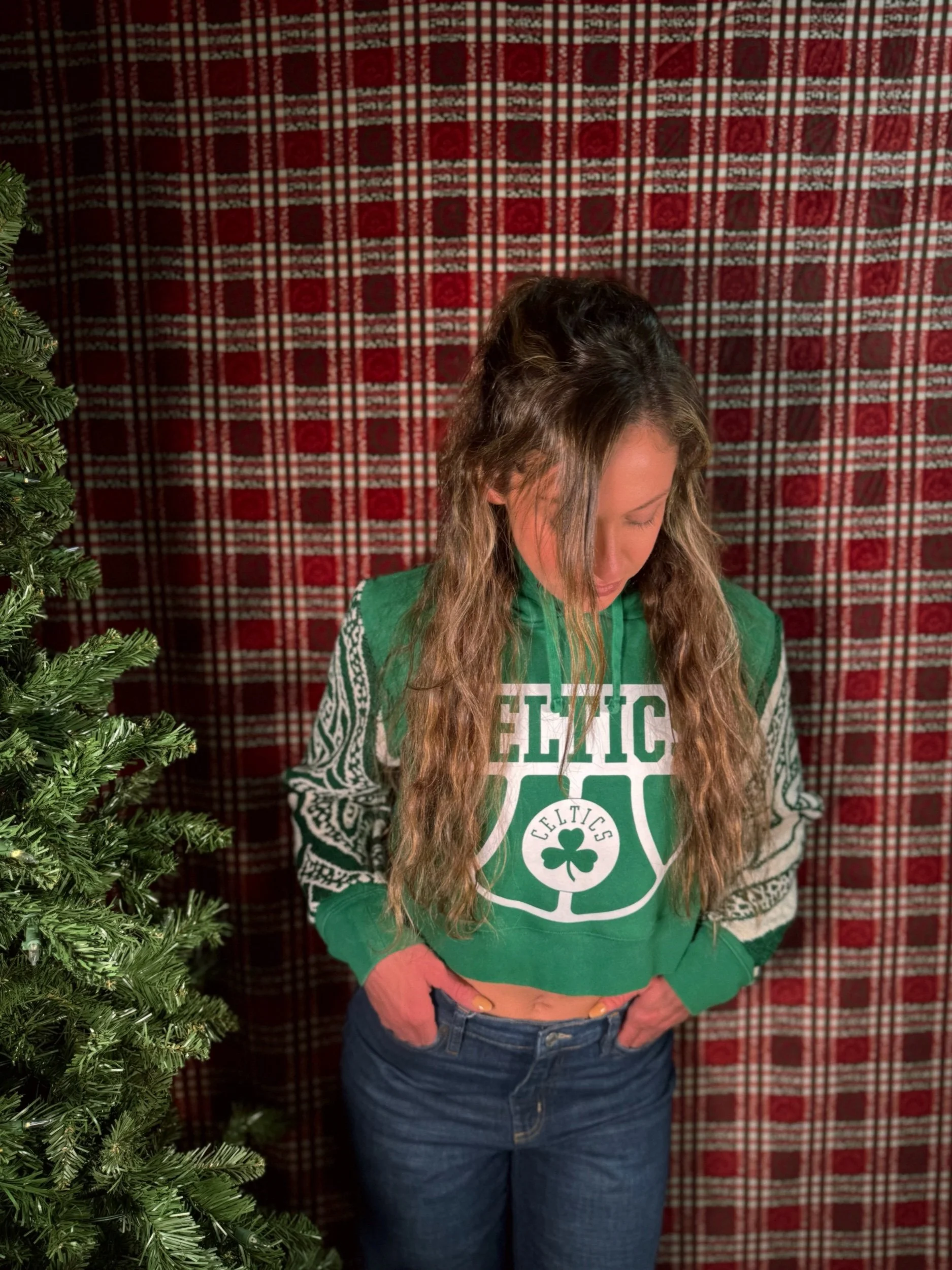 Hoodie made from an upcycled vintage tapestry blanket and Celtics Hoodie